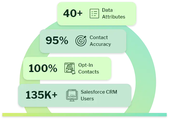Our Salesforce customers list has more than 135K contacts that are gathered from authentic sources. It helps you succeed in targeted outreach efforts and acquiring quality leads. Some of the additional benefits of our email list include: